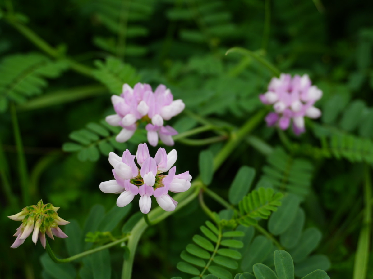 ▲薄紫色が上品な印象のタマザキクサフジ。曇り空ゆえの映え具合。